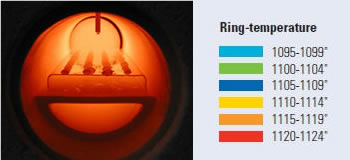 1、FERRO PTCR測溫環(huán)具有公認(rèn)的精確性和可靠性,測溫環(huán)幾乎可被放置在窯爐的任何位置,爐體內(nèi)、推板或傳輸帶上 ,在使用前,不必測量溫度; 2、FERRO PTCR陶瓷測溫環(huán)的工作原理是根據(jù)其在工作溫度范圍內(nèi)的線性收縮,從而給出測溫環(huán)和燒成品的實際累計熱量,對照換算表得出測試溫度,燒制結(jié)束后,將測溫環(huán)取走并做記號; 3、FERRO PTCR陶瓷測溫環(huán)在窯爐中受熱時,它就收縮,并在最高溫度隨保溫時間延長而繼續(xù)收縮。 在其使用溫度范圍內(nèi),收縮率是線性的,這為FERRO陶瓷測溫環(huán)和被燒制的產(chǎn)品所受到的加熱量提供了一種實用的測量方法;收縮量(環(huán)直徑的減少)可用數(shù)字 千分尺測量 ,使用的手持?jǐn)?shù)字千分尺記錄每一片測溫環(huán)的直徑,精確到0.01mm; 4、參照包裝上所附的 環(huán)外徑與溫度對照表、溫度校正曲線圖(隨產(chǎn)品提供),所測出的測溫環(huán)直徑可轉(zhuǎn)換成 等效溫度。 請注意為了使用時精確和方便FERRO測溫環(huán) 每個溫度表都是為該批測溫環(huán)而特別制定的,所標(biāo)的生產(chǎn)批號必須與溫度換算表上的保持一致。 |
